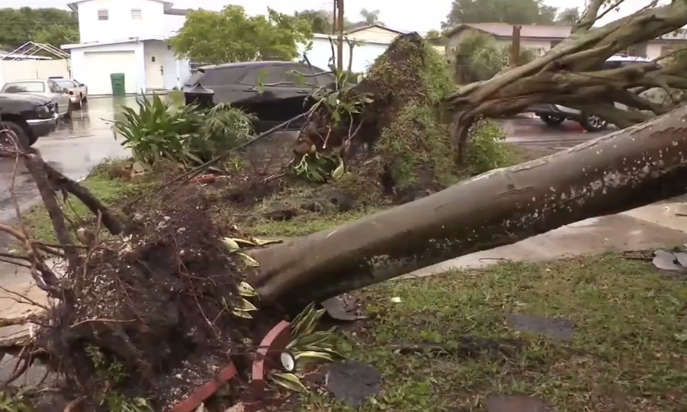 La tarde de este martes fue particularmente violenta en zonas como Palm Springs North, en el noroeste de Miami-Dade. En cuestión de segundos, vientos lineales con fuerza de tormenta —que algunos vecinos compararon con el estruendo de un tren— arrancaron árboles de raíz y destrozaron estructuras. En la zona de la calle 181 y la avenida 78 del noroeste, un árbol gigantesco cayó sobre el vehículo de una familia, mientras que otros residentes reportaron que sus techos y botes fueron desplazados varias casas de distancia por la furia del viento. «Ni siquiera un huracán derribó esto, pero esta tormenta lo hizo en dos segundos», comentó José Gamba, uno de los vecinos afectados, mientras trabajaba con motosierras para despejar los escombros.